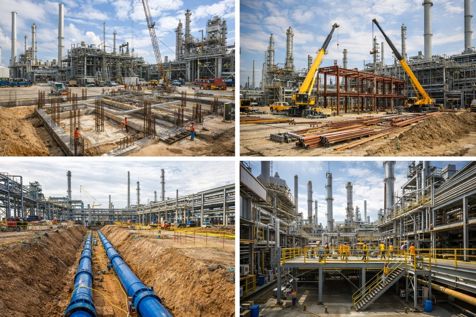 BMIC provides industrial construction services for plants, facilities, and production environments. Our scope includes site execution, civil support works, mechanical infrastructure, and structural installation tailored to industrial requirements.
